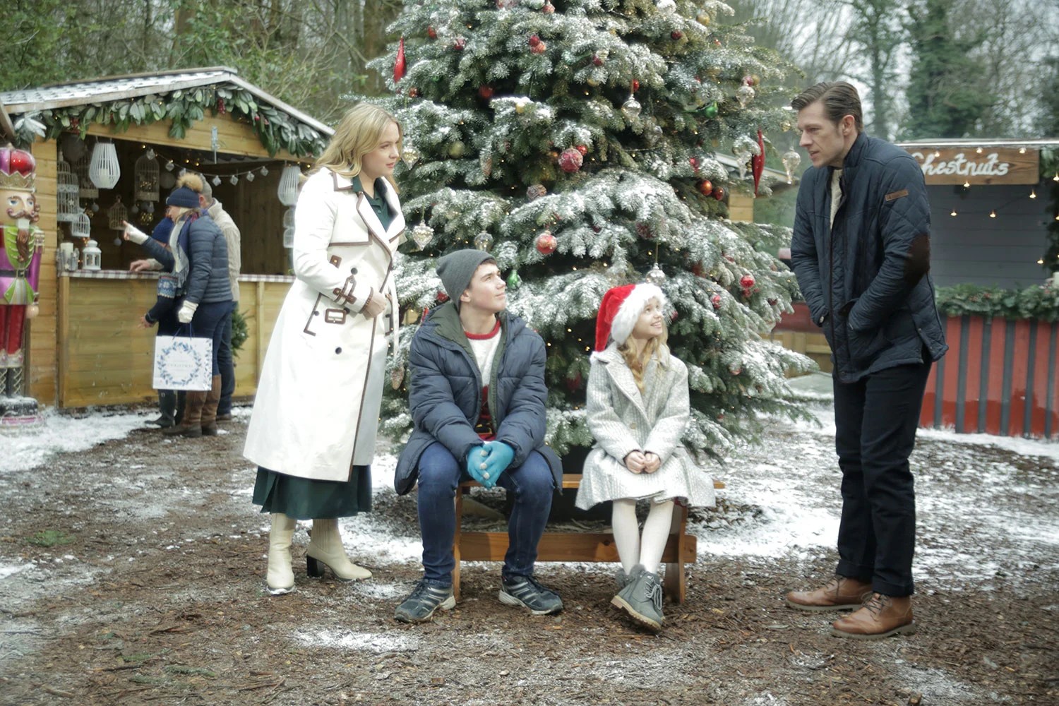 Emma arrives, but Amy isn’t home. There’s a note on the door. It states that Emma should go to the Christmas market. Emma finds Amy, but Amy leaves Emma with Dylan. Dylan is Amy’s business partner and Harry’s best man. Dylan teases Emma before Amy returns. Emma finally gets Amy to focus on a single task. Amy has lots of ideas but can’t choose anything. She wants Emma to work with Dylan to create the perfect wedding. However, Amy wants Emma to enjoy the English countryside and visit their dad’s side of the family. Emma nods but cares about inviting Oliver and growing her brand. Dylan wants homemade items, while Emma strives for clean perfection. She hides her ulterior motive from Dylan but likes his approach. They find a loving connection over a yule log. But will that love disappear when Dylan learns the truth?